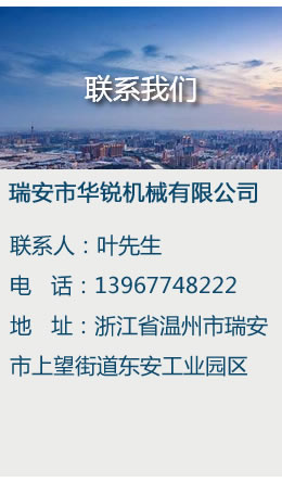 瑞安市華銳機械有限公司的誠信、實力和產(chǎn)品質量獲得業(yè)界的認可。歡迎各界朋友蒞臨參觀、指導和業(yè)務洽談......【查看詳情】